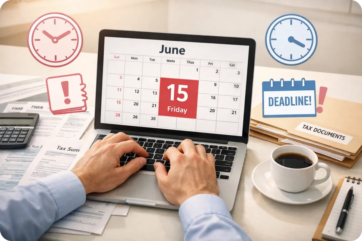 The standard April 15 deadline doesn’t apply to you. Instead, your deadline is June 15, 2026. That gives you two extra months to gather your documents, understand your obligations, and file correctly.